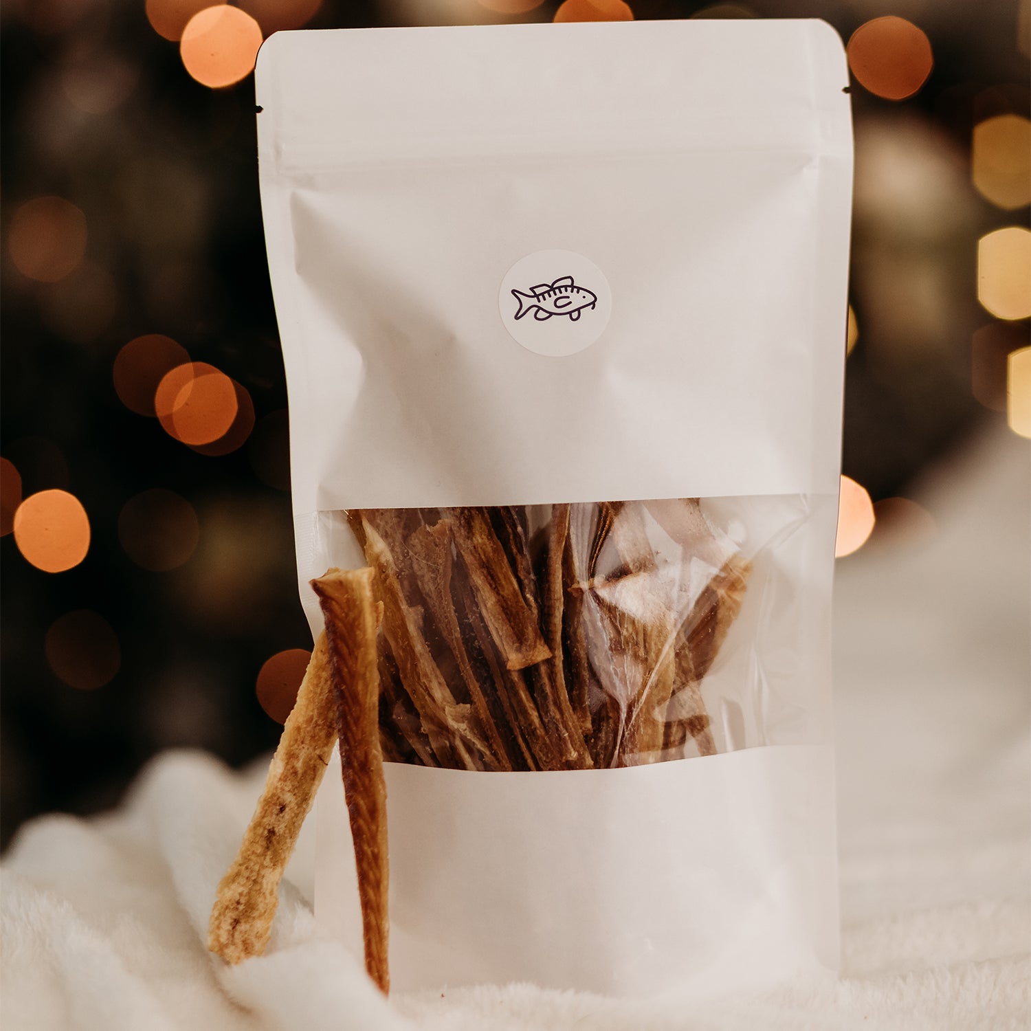 Preparati con soli filetti di merluzzo. Ideali per prendersi un momento di calma, masticare, rilassarsi e allo stesso tempo favorire l’igiene orale. -